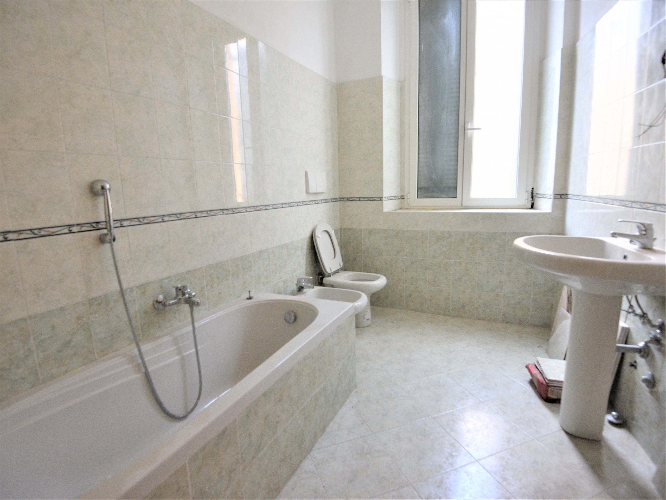 Adiacente alla cucina troviamo un locale che può essere destinato ad uso ripostiglio o dispensa, un disimpegno ci porta infine al bagno dell’immobile (dotato di vasca da bagno e sanitari) e alla luminosa camera da letto di grandi dimensioni.