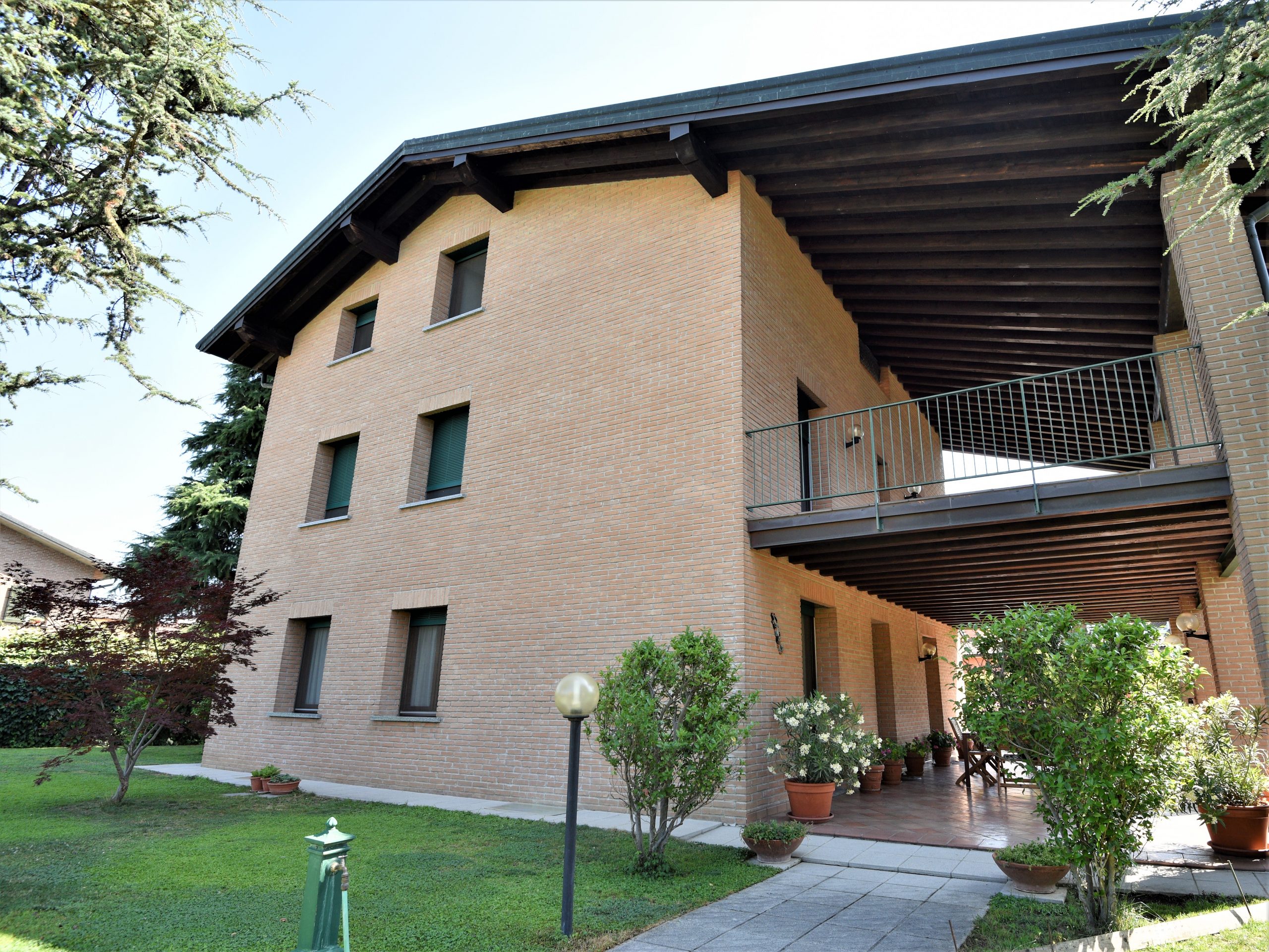 L’immobile presenta inoltre le seguenti caratteristiche: serramenti in legno-doppio vetro, tapparelle in alluminio automatizzate, parquet in gran parte dei locali, inverter caldo-freddo presente in tutti i piani dell’abitazione, elegante ascensore interno, impianto fotovoltaico, videocitofono, cancello elettrico, riscaldamento a gas-radiatori presente in tutti i bagni. Il giardino privato, finemente piantumato e interamente pianeggiante misura circa 1.700 mq ed è dotato d’irrigazione automatica, all’interno della proprietà sono inoltre presenti altri 4 posti auto (due dei quali coperti).
